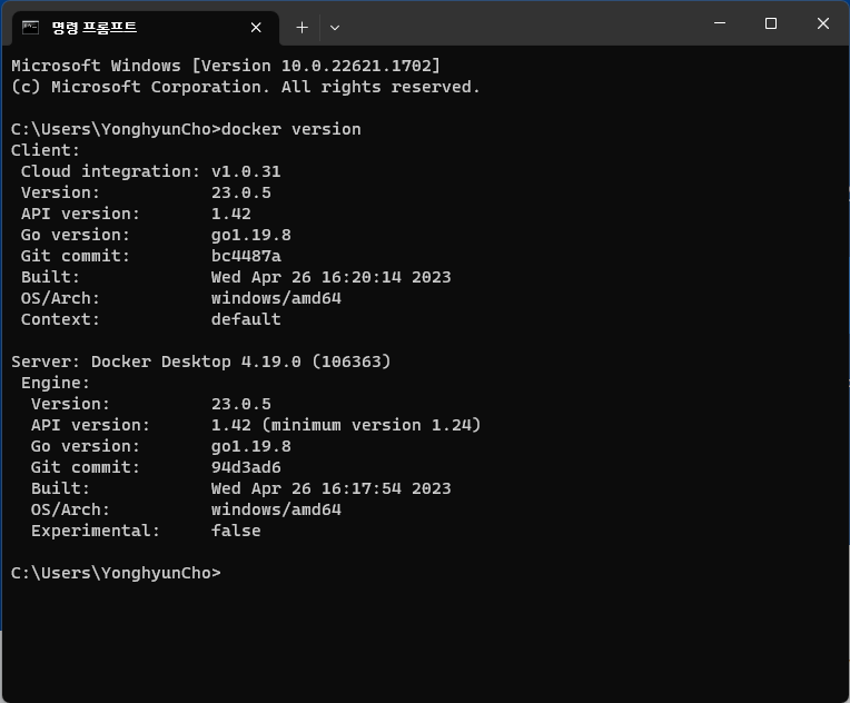 4. CLI 명령어로 Docker 설치 확인