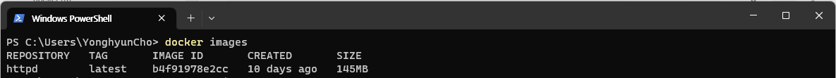 여기서 이미지 이름은 httpd 이며, 태그는 latest이다.