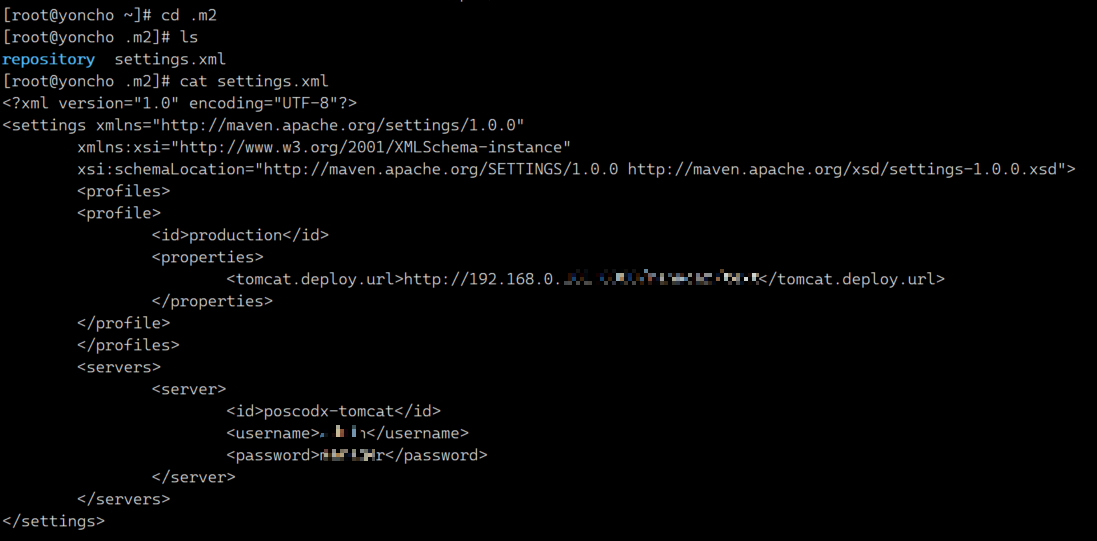 2. CentOS (Server OS)의 /.m2 디렉터리에서 settings.xml 작업