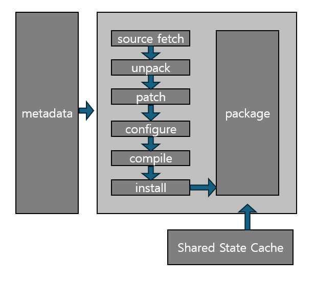 우리가 앞서 진행한 Poky는 metadata를 읽어 bitbake가 빌드할 때 필요한 소스코드를 외부로부터 실시간으로 받아온다.