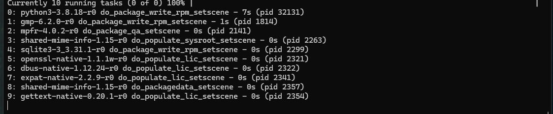하게되면 아래와 같은 setscene이 적용된 걸 확인할 수 있고, 빌드 시간이 단축된걸 느낄 수 있다.