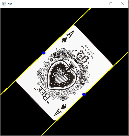 cv2.line(dst, (x1, y1), (x2, y2), (0, 255, 255), 2)